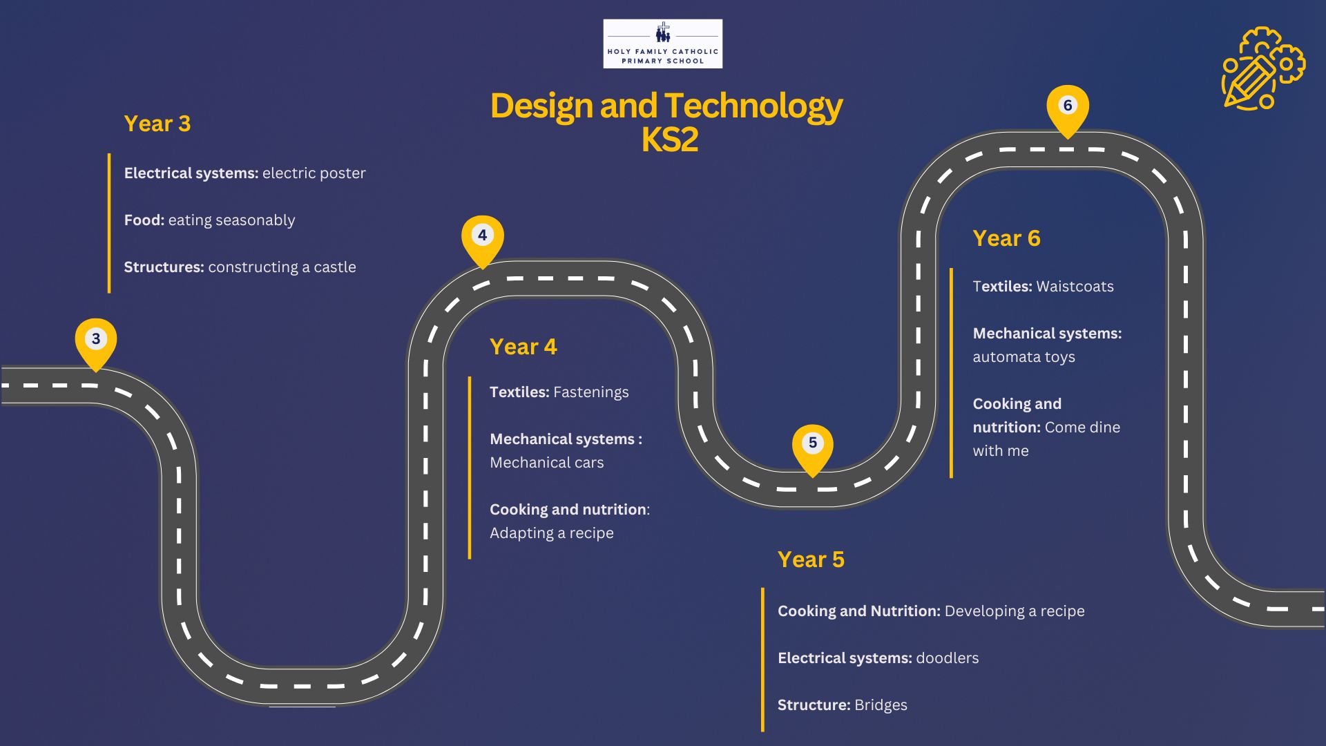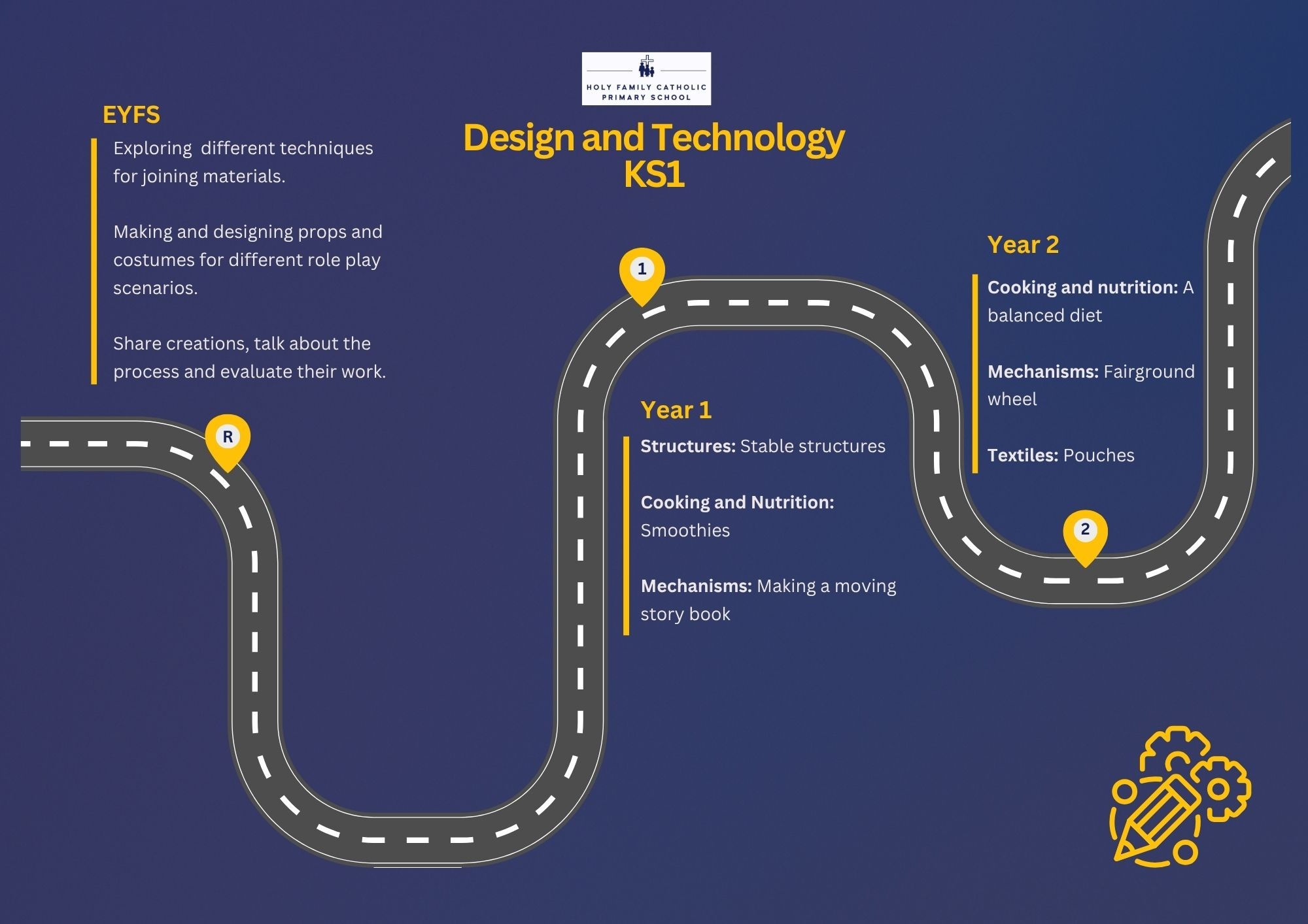 Design and technology intent and implementation at Holy Family School is through discovery, awe and wonder, using problem solving skills and creativity and imagination to design and make products that solve real and relevant problems within a variety of contexts. Our aim is to make the learning journey of DT purposeful, considering others needs, wants and values. Our DT, where possible, is cross curricular, allowing the children to develop their knowledge of a topic they are learning about and provide deeper learning experiences.