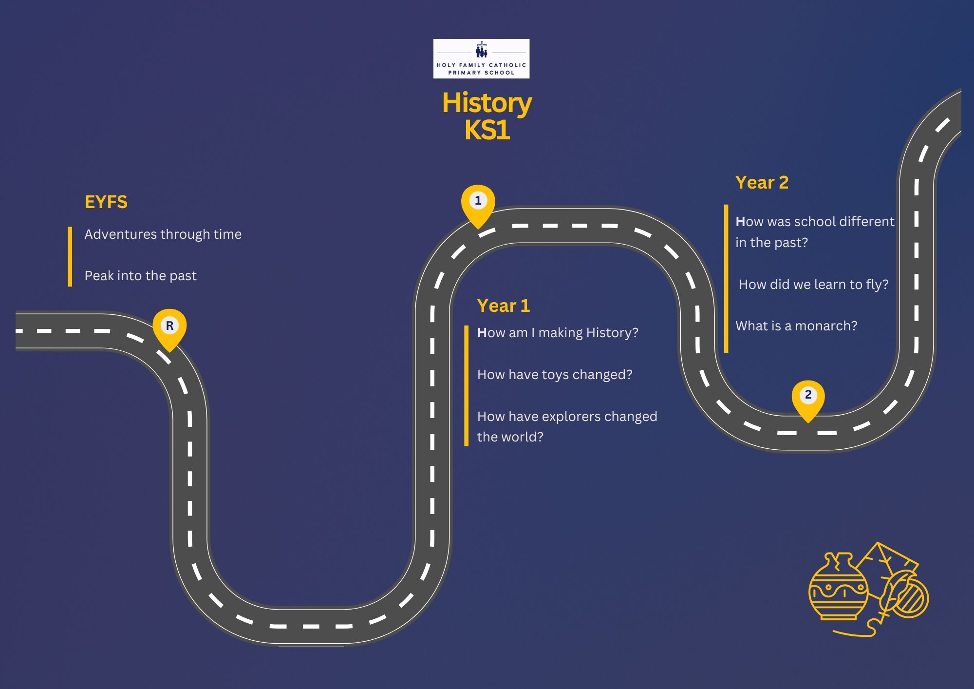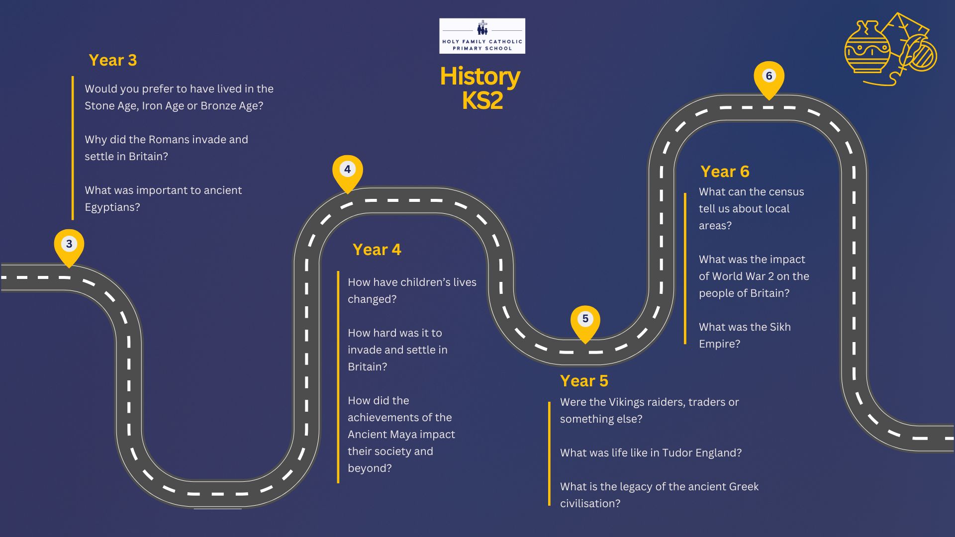 At Holy Family School, our History curriculum is designed to inspire curiosity, deepen understanding of the past, and promote reflection on how history shapes the world we live in today. As a Catholic school, we believe History provides vital opportunities to explore themes of justice, stewardship, human dignity, and moral responsibility.